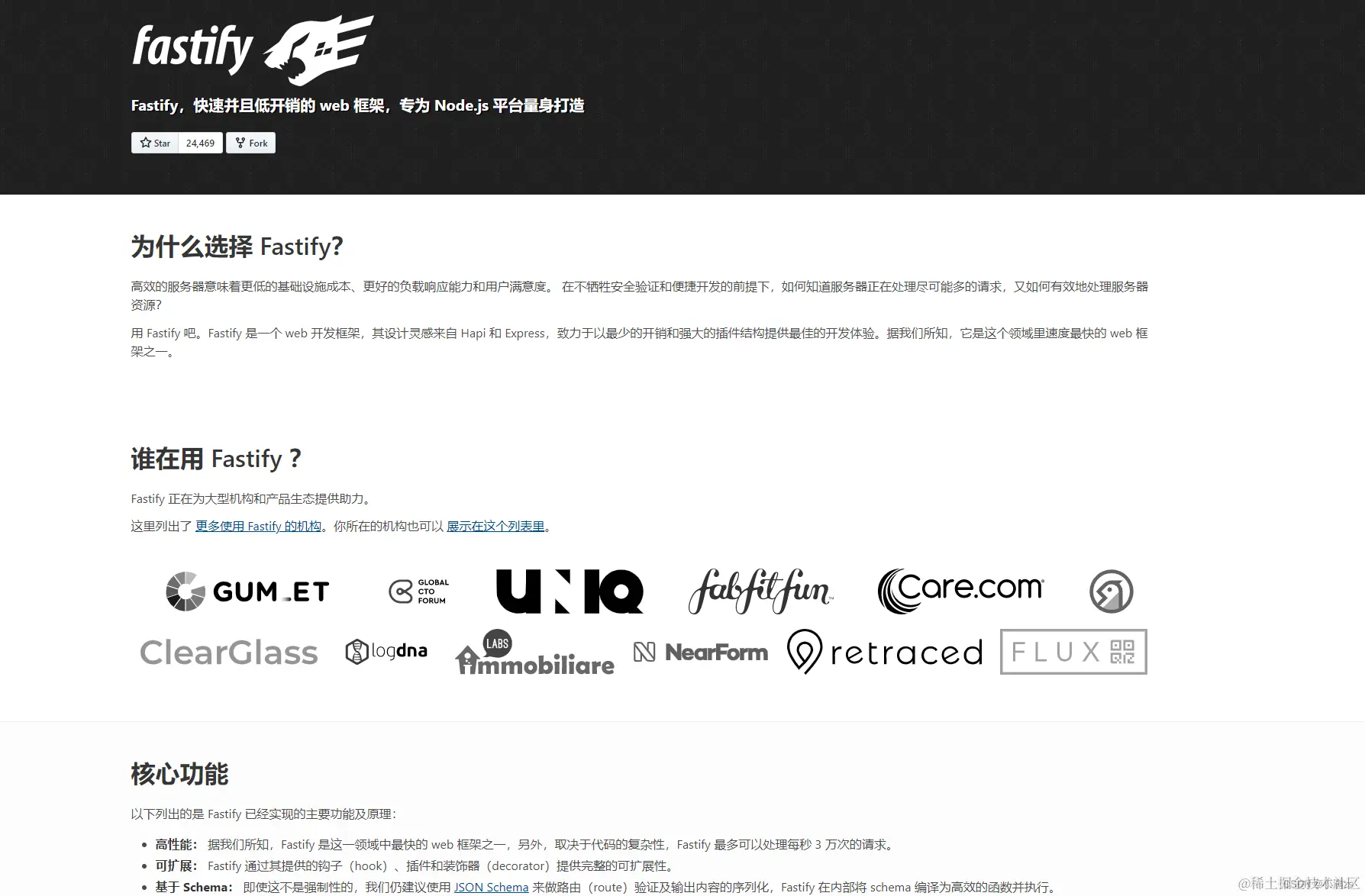 - 高性能: 据我们所知,Fastify 是这一领域中最快的 web 框架之一,另外,取决于代码的复杂性,Fastify 最多可以处理每秒 3 万次的请求。