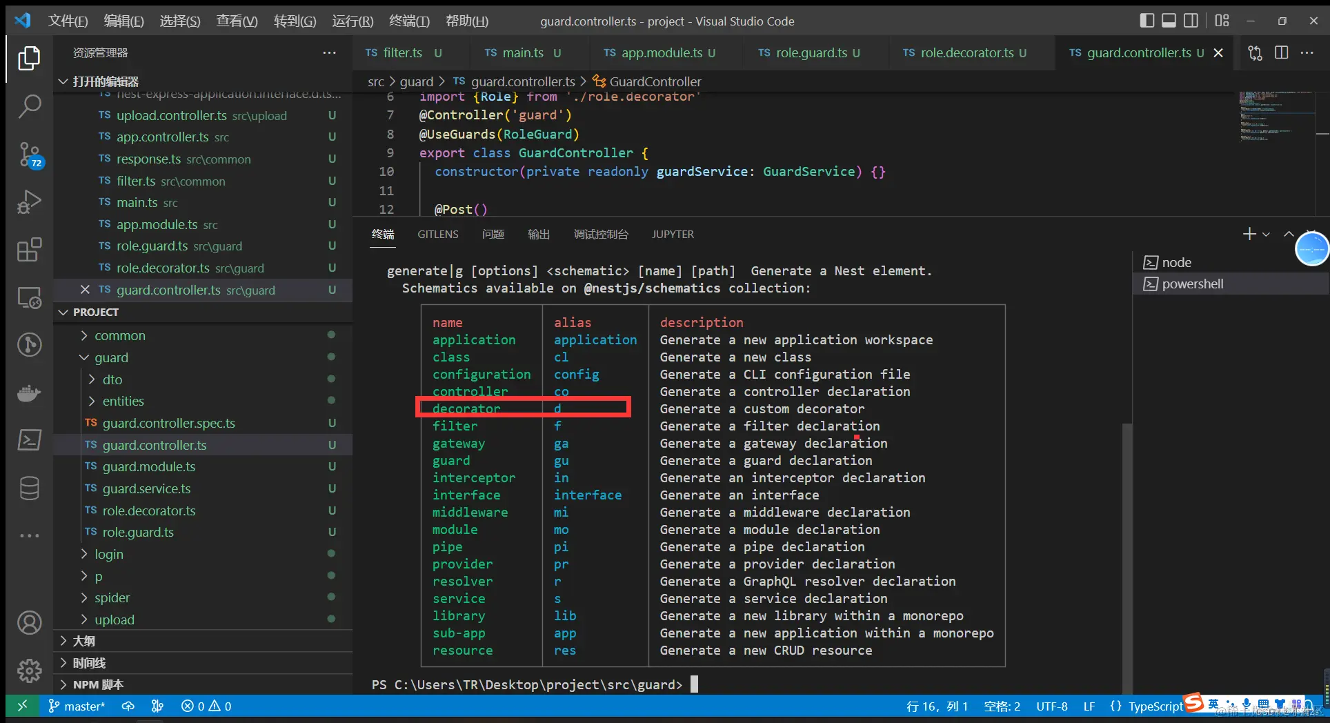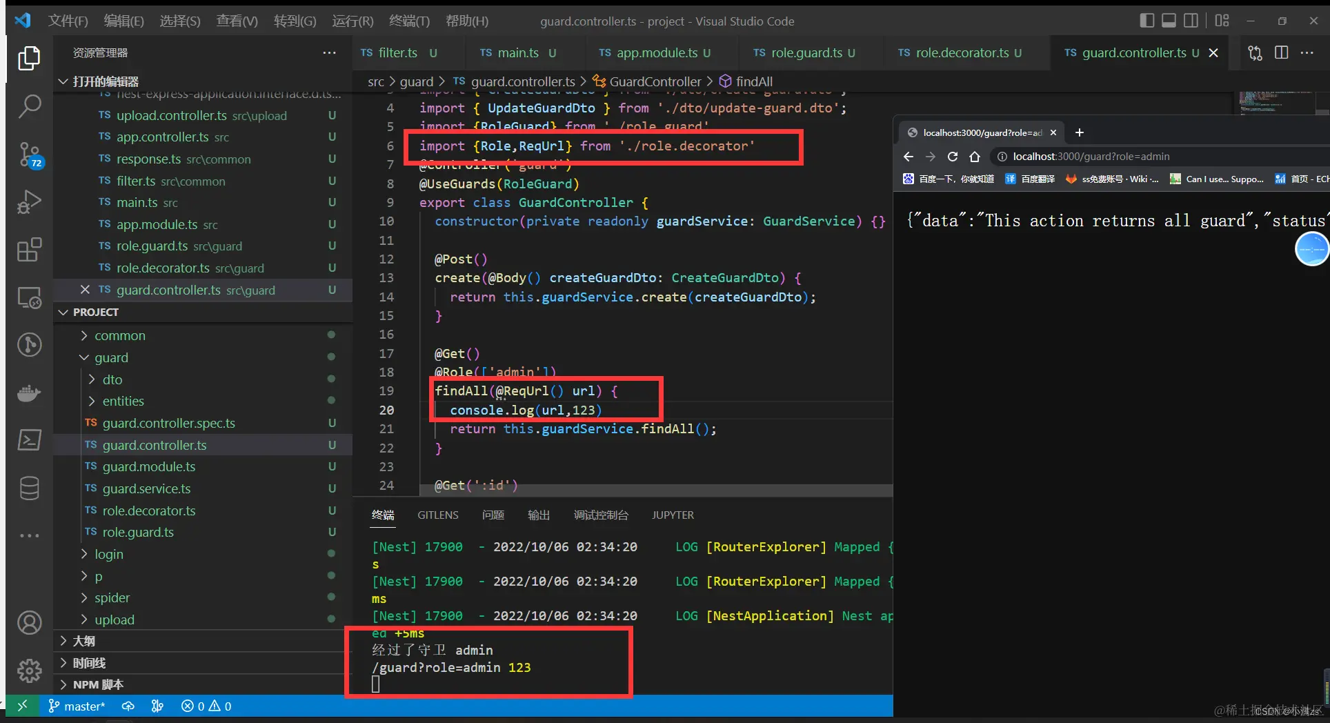 在Nestjs 中我们使用了大量装饰器 decorator ,所以Nestjs 也允许我们去自定义装饰器。