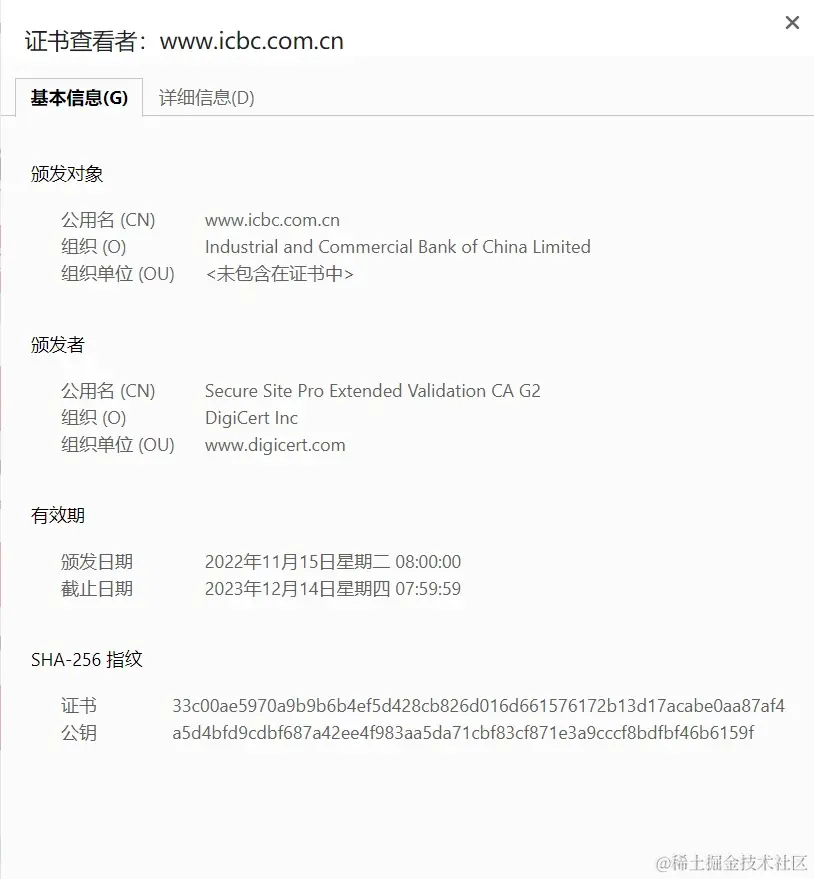 在当今数字化时代,保护网络安全尤其是数据安全非常重要,国家也出台了《网络安全法》《数据安全法》《关键信息基础设施安全保护条例》《个人信息保护法》等相关法律法规要求平台做数据加密,以保护数据的完整性、保密性和可用性。其中,SSL证书是实现HTTPS加密保护数据传输安全的重要举措。作为中国的四大银行之一,国家重要的金融机构,工商银行的官网当然也部署了SSL证书,并且采用的是全球知名SSL证书品牌DigiCert的至高验证级别的EV SSL证书。那么DigiCert是什么样的证书品牌?EV SSL证书又是什么样的证书类型?下面我们一起来了解一下吧。