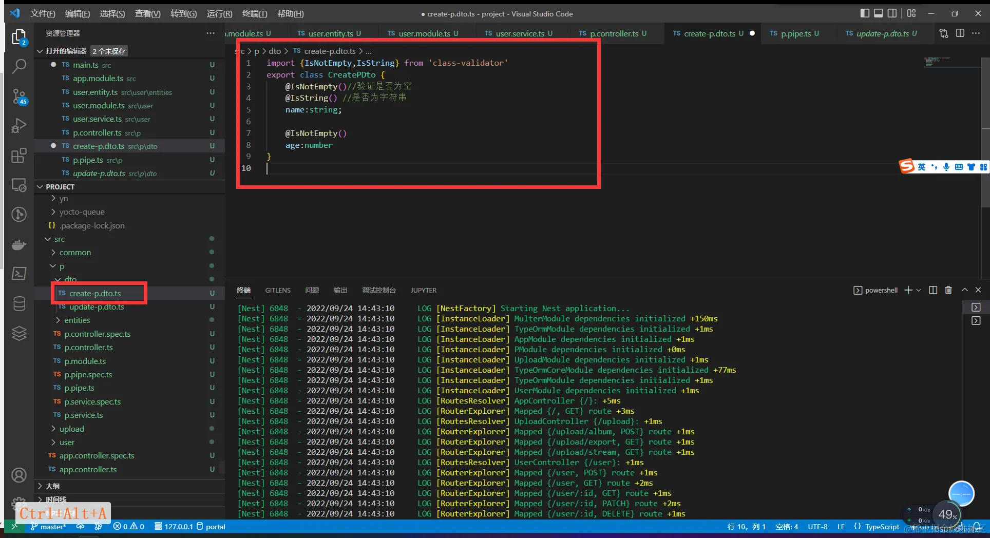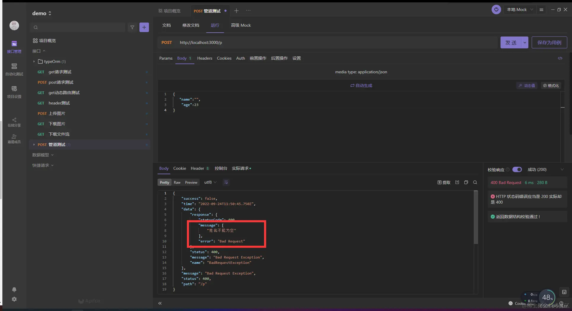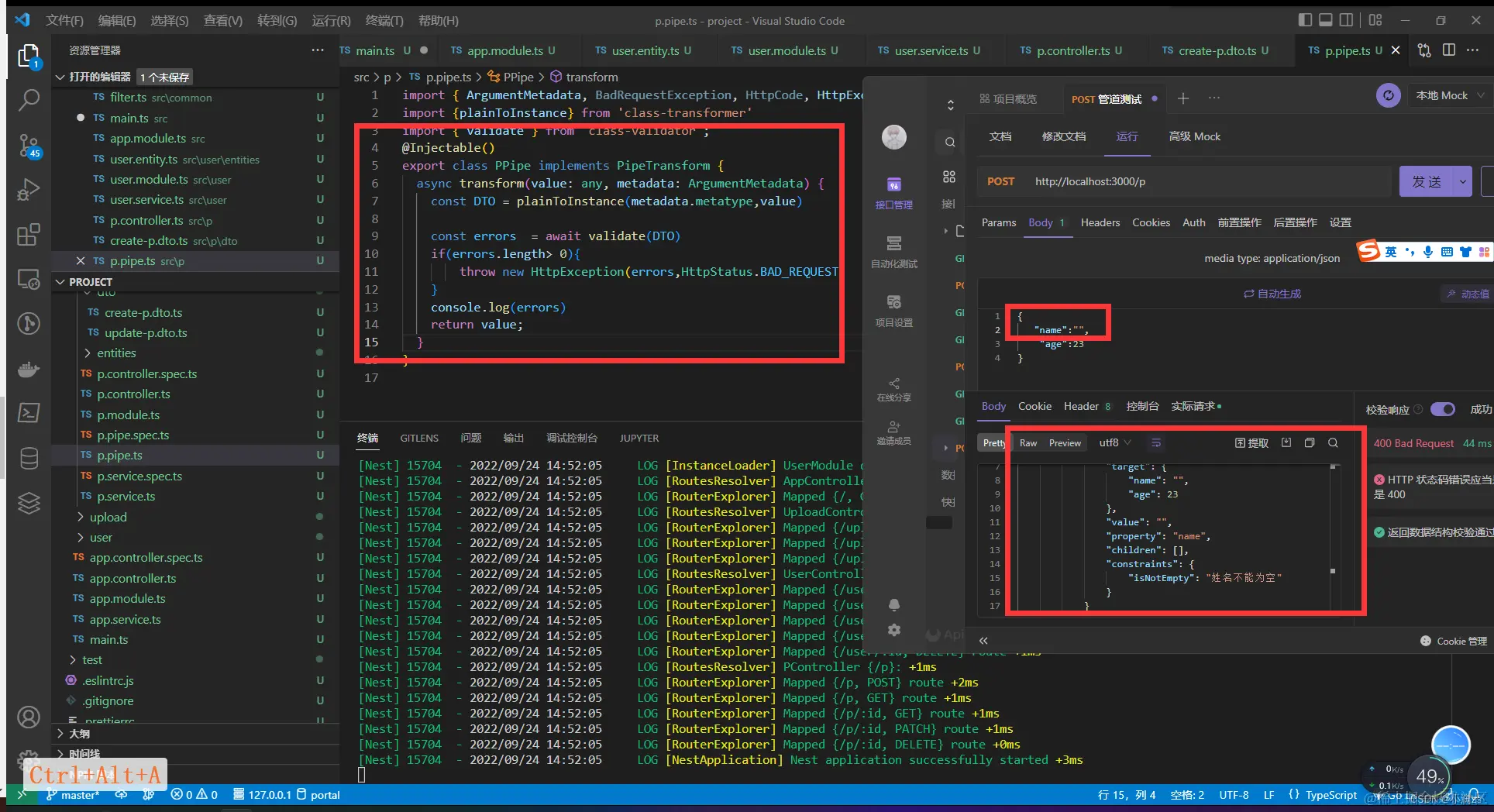 通过 validate 验证 DTO 返回一个promise 的错误信息 如果有错误抛出