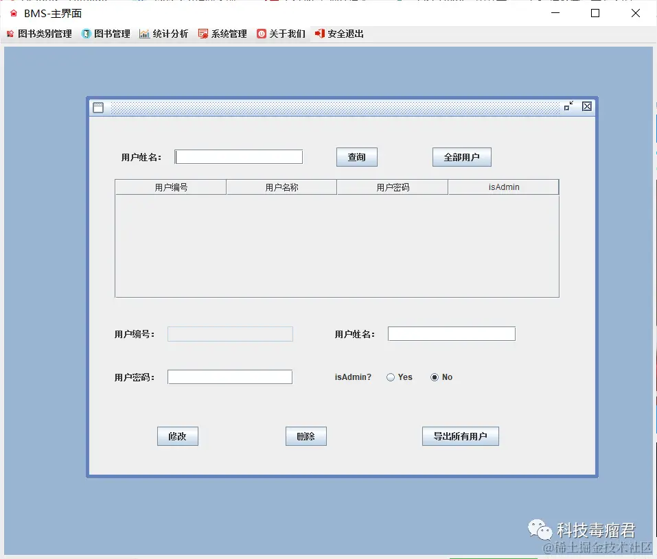 ④管理员端的借阅统计功能可以借鉴用户界面的功能实现,由于接下来的任务比较重,所以,并没有完成,等着感兴趣的小伙伴完成。但是在用户界面统计功能算是完成的。