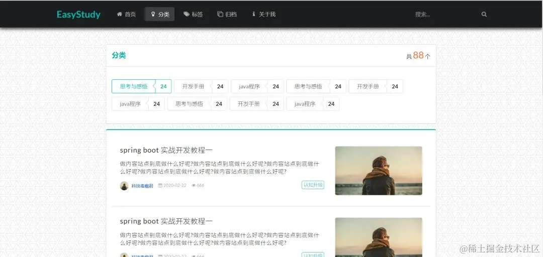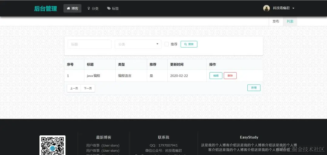可以根据标题,分类,标签查询博客