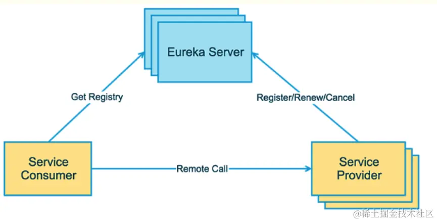 同时为了提高性能,这个服务地址信息会在每个服务本地缓存一份地址信息表,定时更新,这样每次请求服务时,不用每次去Eureka查询来降低服务调用耗时。