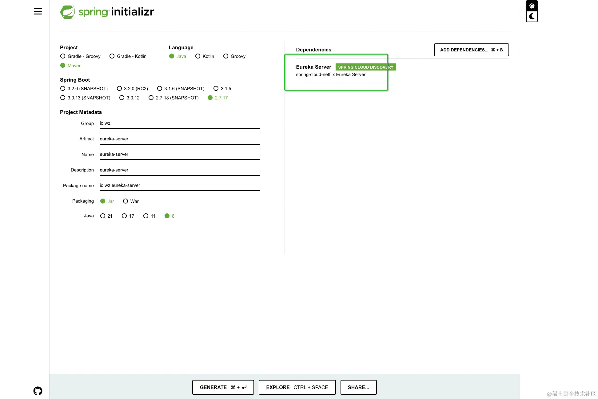 请参阅下面的屏幕截图,在使用 springinitializr创建 Spring Boot 应用程序时输入详细信息 :
