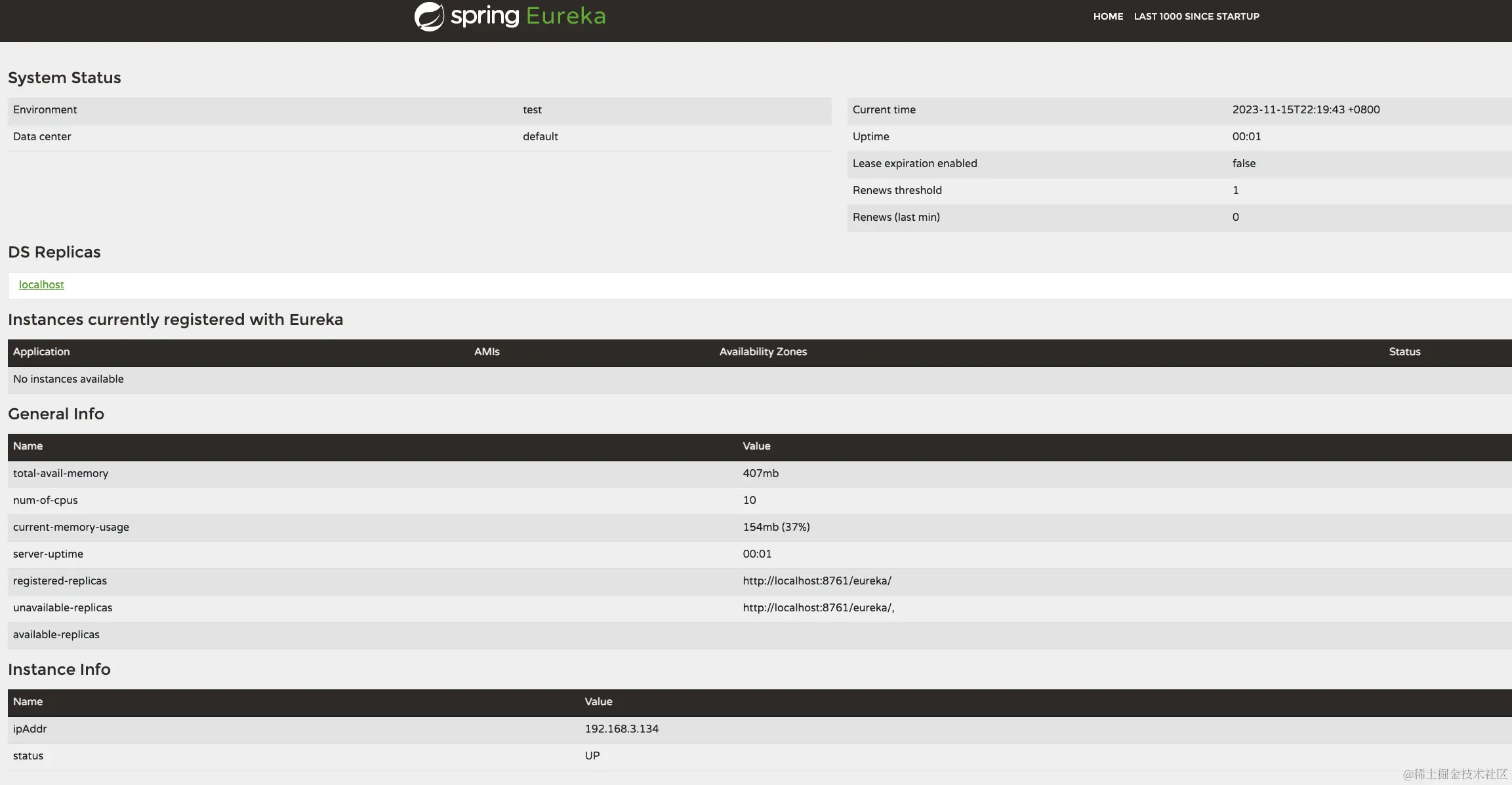 Eureka Server 提供了 UI,我们可以在其中看到有关注册服务的所有详细信息。
