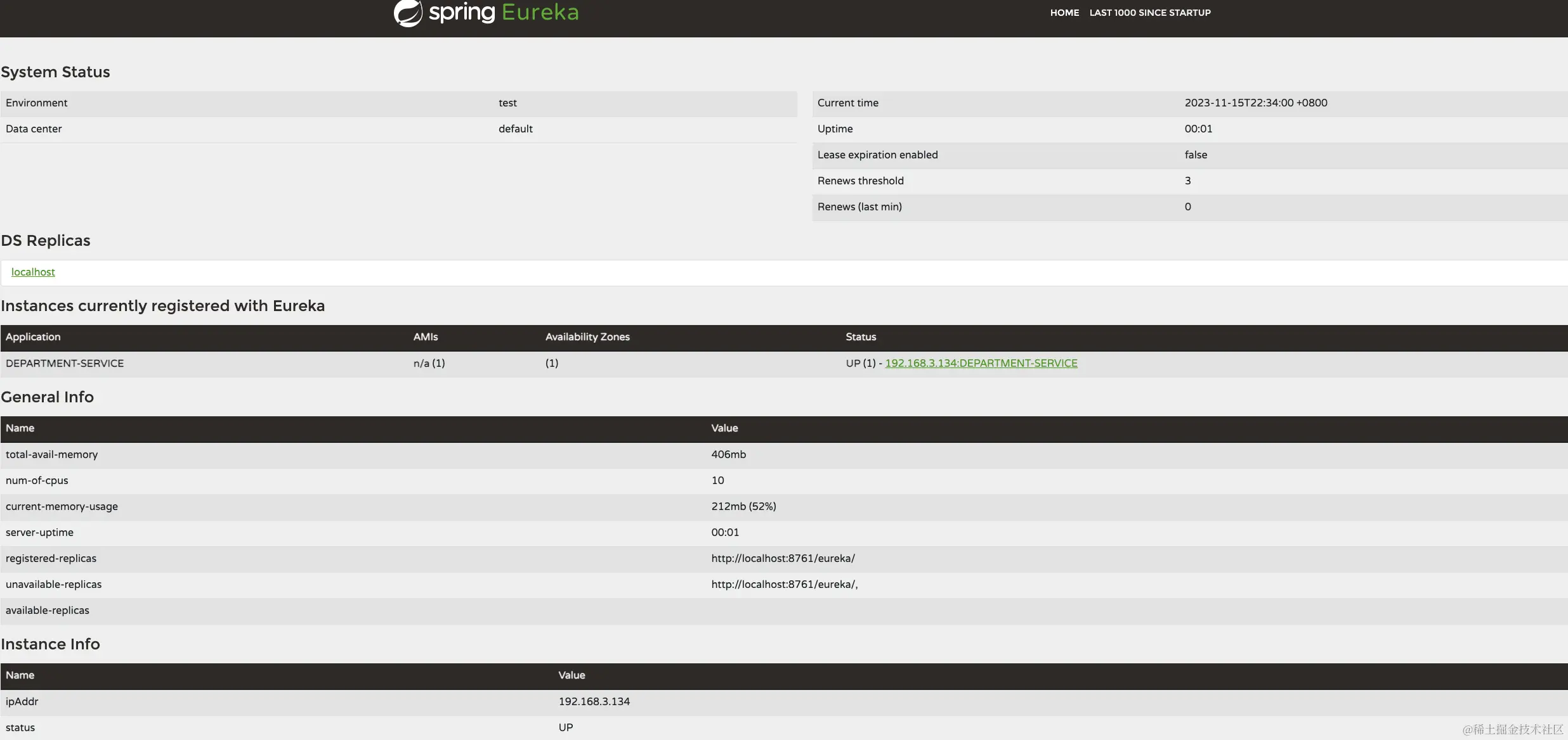 完成此配置后,启动Department-service并访问 http://localhost:8761。