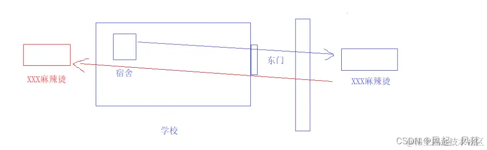 此时你和你的朋友 依旧照常来到东门吃麻辣烫,但是发现告示后,还要去到西门 过了一段时间,你和你的朋友就直接去西门吃麻辣烫了 (重定向一次后,下次就会去新的地方了)