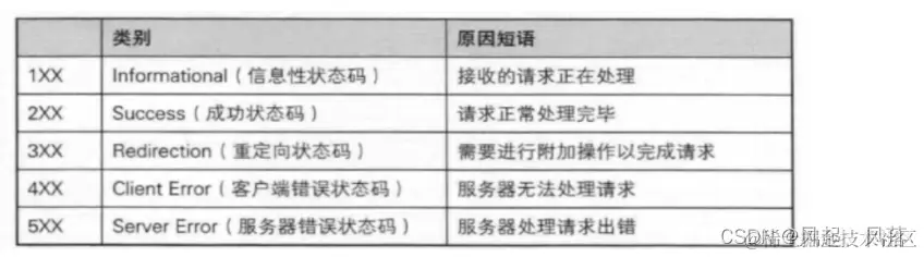 在HTTP服务器中,状态码分为五类,分别为1开头、2开头、3开头。4开头、5开头