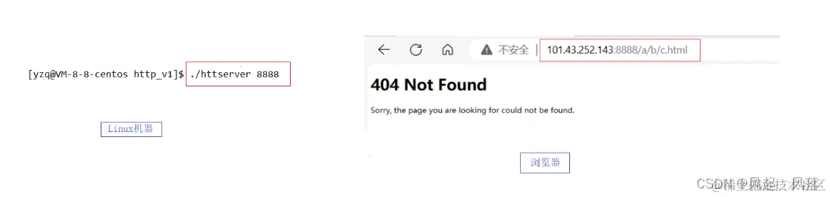 当在可执行程序中输入 端口号8888时,就意味着浏览器只能输入 主机IP+端口号 当浏览器 输入 主机IP+端口号 后,又输入其他东西,则会导致 404 报错