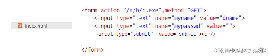 action表示 将表单提交给 /a/b/c.exe 对应方法 为 GET