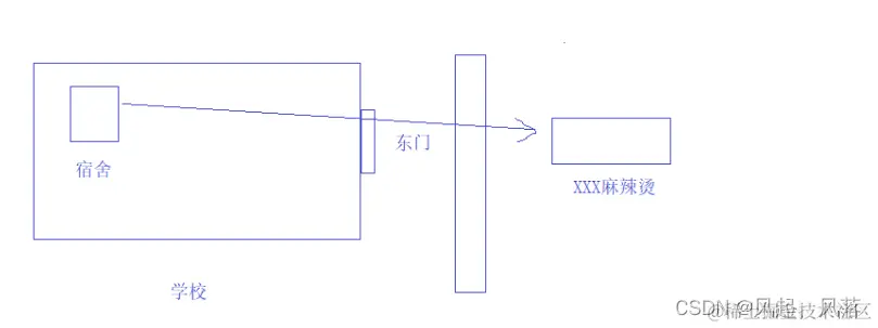 如:在你们学校的东门,有一家XXX麻辣烫, 你和你的朋友在宿舍中, 在你们学校的东门,门口有一条路,这条路正在修路,但依旧可以走过去,所以你和你的朋友前往麻辣烫店吃了一次