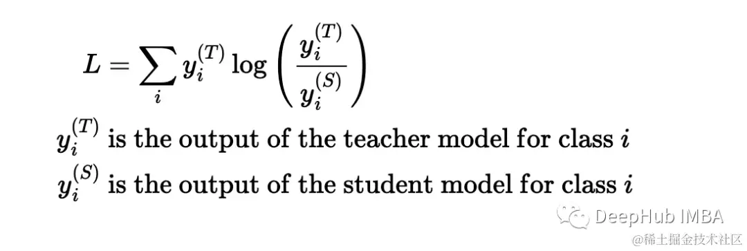 精馏的目的是尽量减少教师预测和学生预测之间的差异。这种散度最常用的度量是Kullback-Leibler散度: