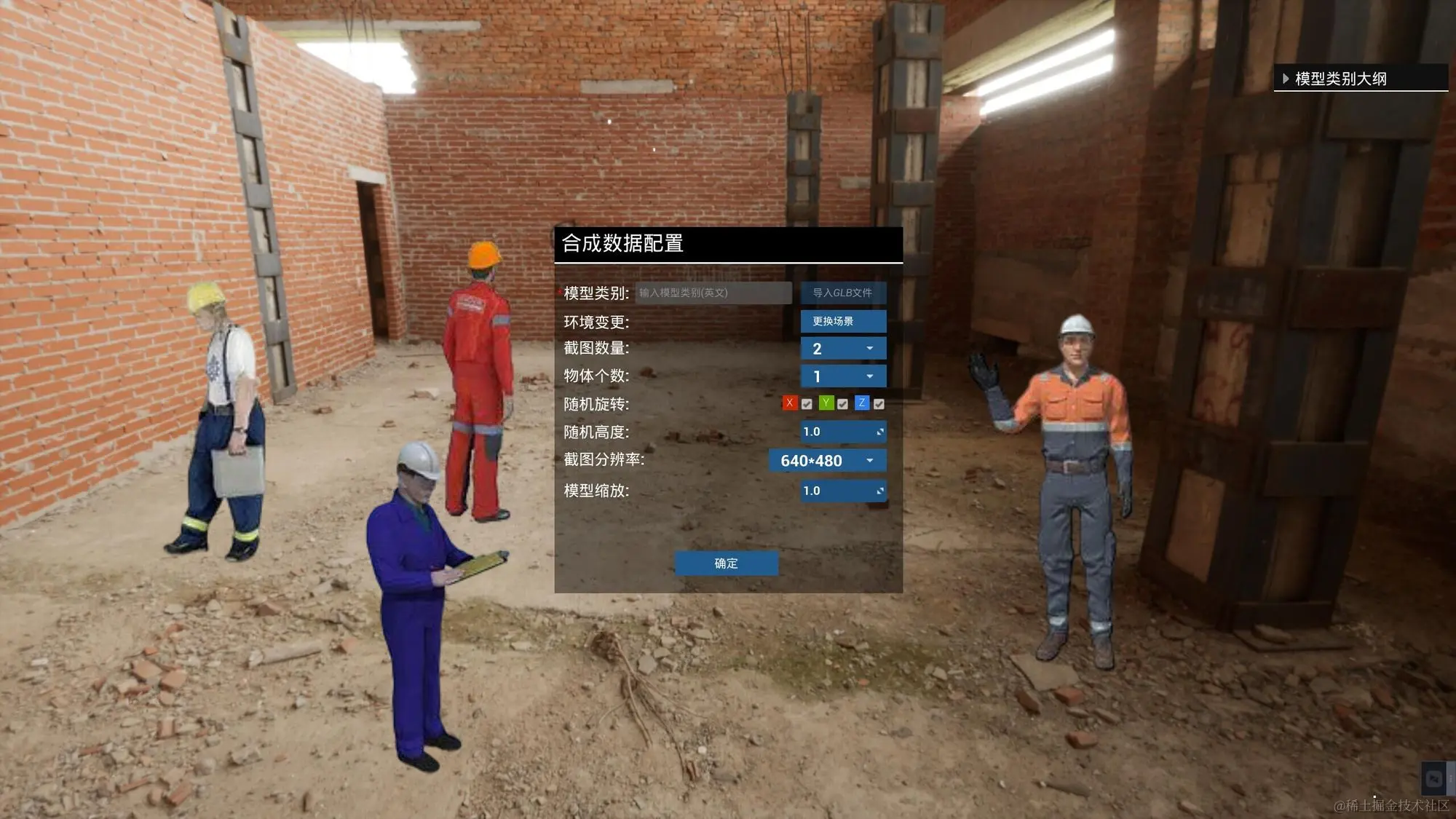 在本文章,将使用UnrealSynth虚幻合成数据生成器 来生成训练所需要的数据集,用户只需要将安全帽的3D模型导入UnrealSynth中,经过简单的配置就可以自动生成数据集,非常的简单方便: