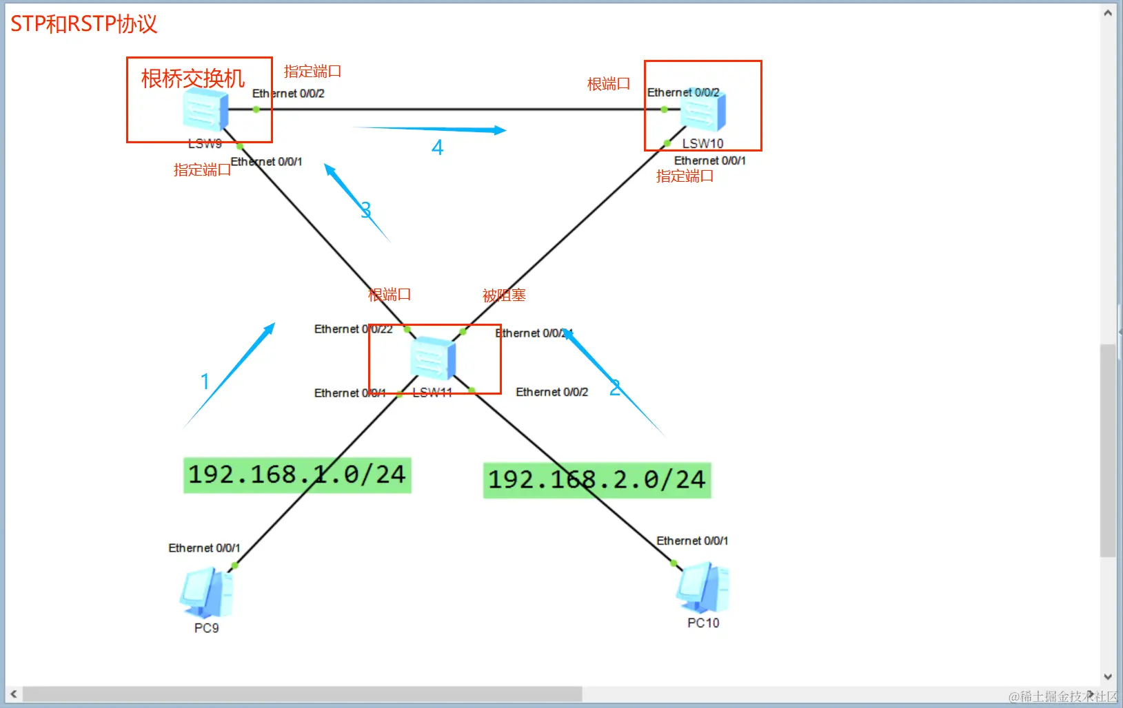 根据抓包路径就可以看到实例10是阻塞的LSW11 到 LSW10这条路径,