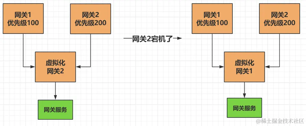 当两个VRRP虚拟接口网关都存在的时候,则是优先级高的来当网关,提供网关服务