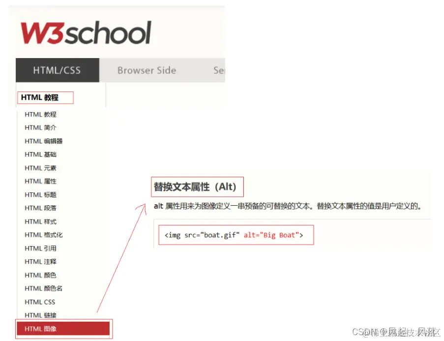 在HTML教程中,找到HTML图像,其中寻找到 替换文本属性