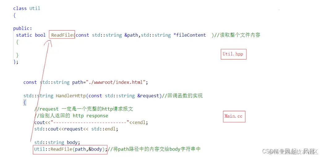 创建 Until.hpp 在Until这个类中,创建一个接口 ReadFile 用于读取整个文件内容