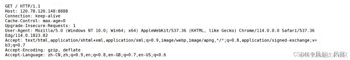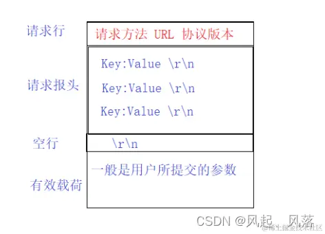由 Key Value 构成的 多行结构 作为 请求报头 并没有包含 有效载荷 Host 表示 这次请求给哪台主机,一般为目标服务器的IP地址和端口号 Connection 表示 这次请求的链接模式 长/短链接 Cache-control 表示 双方在通信时 要建立缓存,最大缓存的生存时间默认为0(不缓存) User_Agent 表示 HTTP请求的客户端信息 Accept_Encodong 表示 作为客户端,能接受的编码和压缩类型 Accept_Language 表示 作为客户端,能接受编码符号
