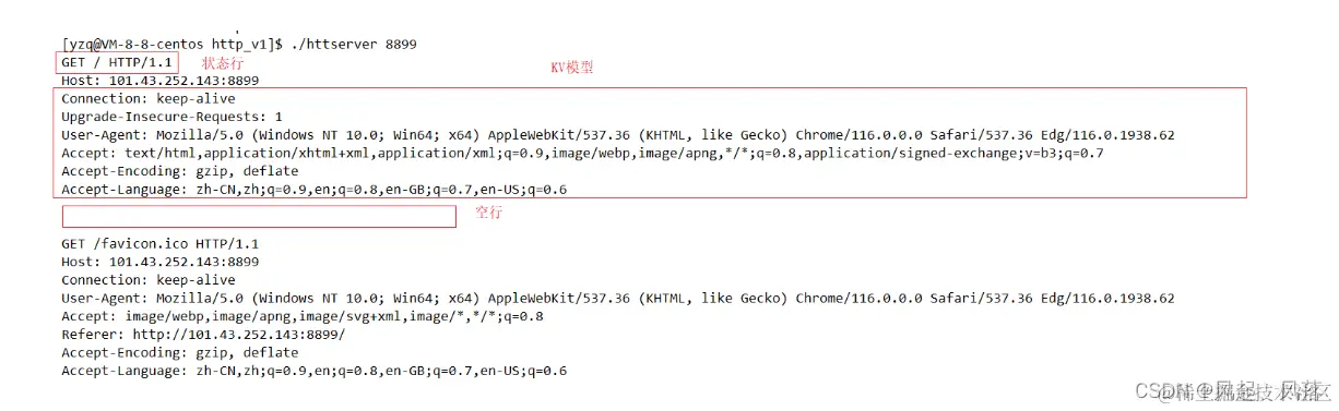 当从浏览器输入 主机IP+端口号 ,Linux上显示如下数据