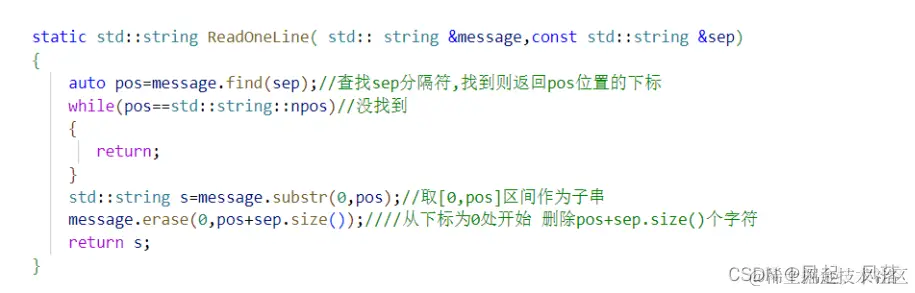 auto pos=message.find(sep);//查找sep分隔符,找到则返回pos位置的下标