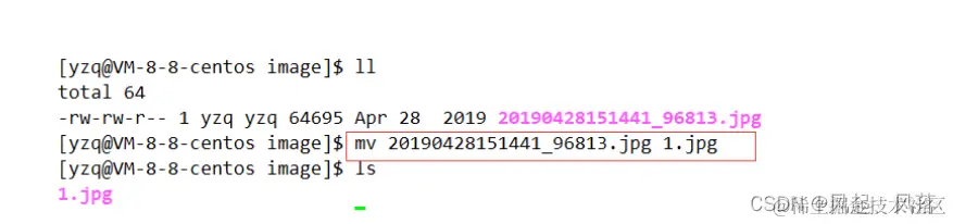 使用 mv 指令 ,将 原图片名字改为 1.jpg