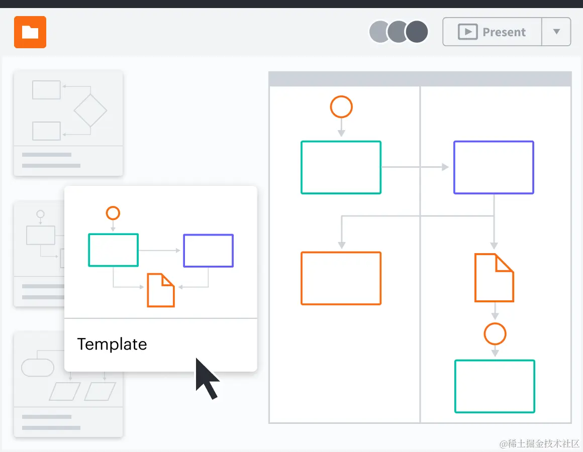 Lucidchart是一款功能强大的在线流程图软件,它提供了丰富的模板和符号库,可以满足各种流程图绘制需求。用户可以轻松地创建各种类型的流程图,如流程图、组织结构图、数据流程图等,并与团队成员实时协作。