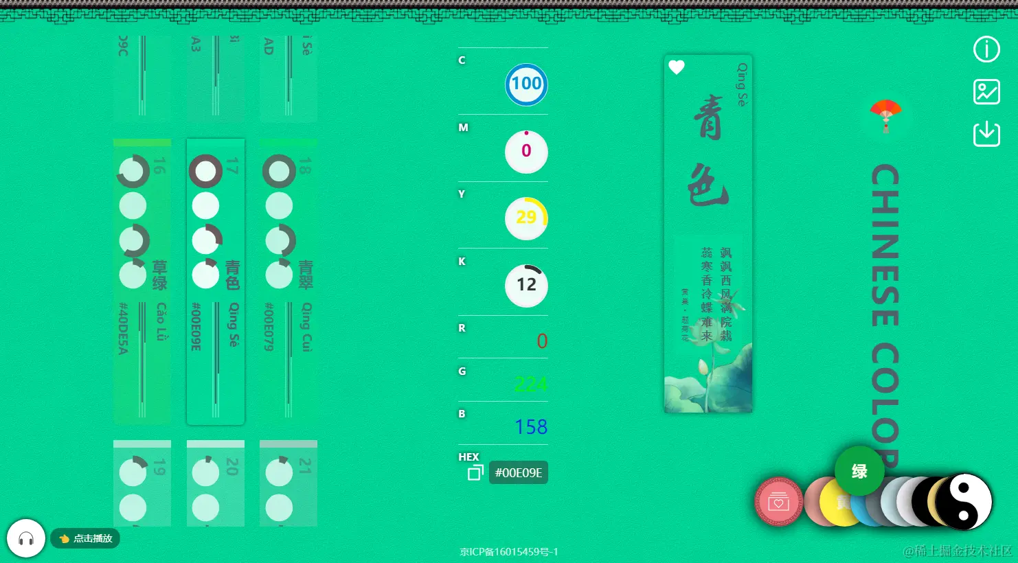 GitHub:GitHub - zerosoul/chinese-colors: 🇨🇳🎨Chinese traditional color cheatsheet online