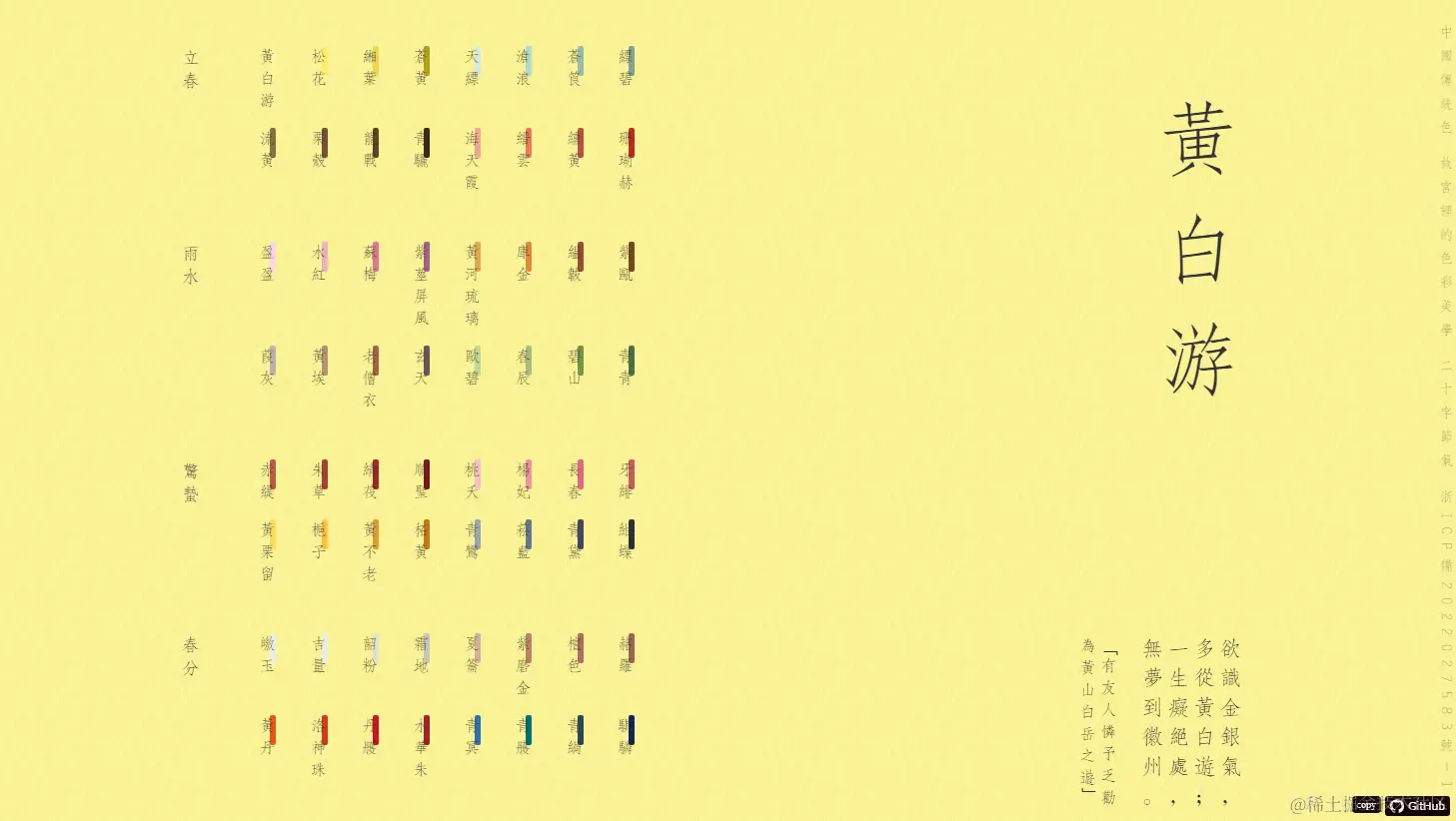 GitHub:GitHub - flinhong/colors: 青山绿水,白草红叶黄花。颜色都该有它好听的名字!