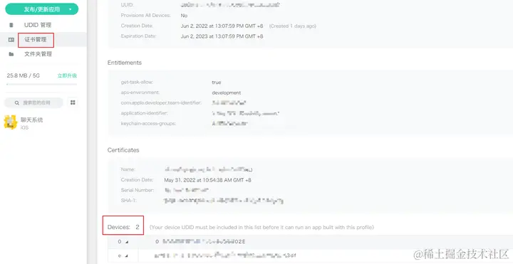 之后在重新下载这个描述文件,可以传到蒲公英的证书管理里看下有没有生效,我这里显示2台设备,说明已经可以了: