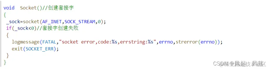 使用socket 创建一个TCP的网络通信,并返回文件描述符到 _listensock中 把上篇博客的 日志(log.hpp)与错误信息枚举(err.hpp)拷贝过来 若套接字创建失败,则通过日志将错误信息打印处来,并借助 错误信息枚举 终止程序