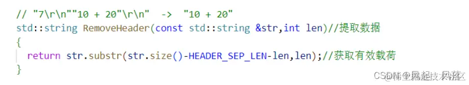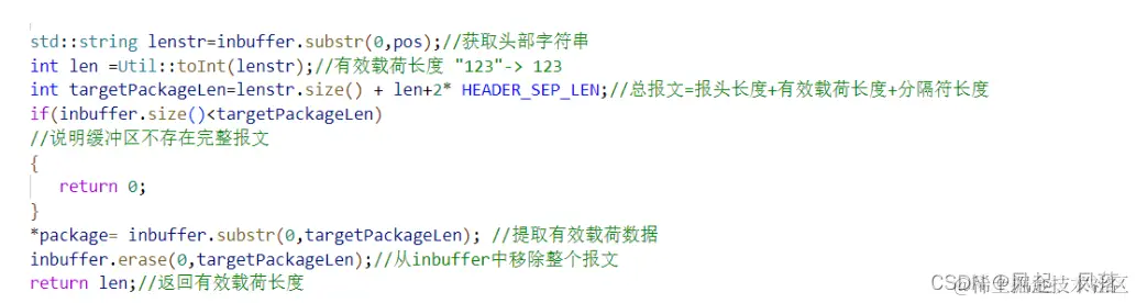 通过find 查找inbuffer中的\r\n的位置,在使用substr将提取到的头部字符串(报头) , 使用 toInt 将字符串转化为数字 ,即获取到字符串长度 最终将有效载荷数据传入 package中