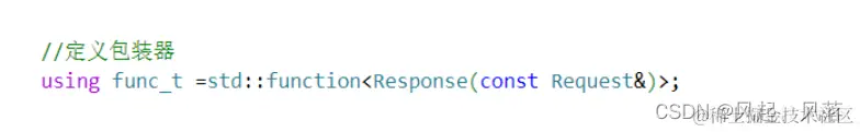 定义一个包装器,其返回值类型为Response ,参数为 Request ,并重命名为 func_t