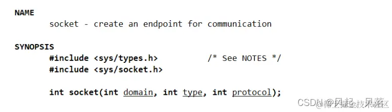 输入 man socket,创建套接字