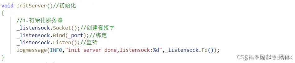 在初始化中,使用_listensock这个对象 去访问 Scok类中实现过的 Socket Bind Listen 等函数