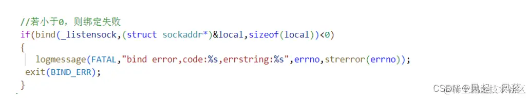 若小于0,则绑定失败 依旧使用日志打印处错误码和错误原因,再终止程序