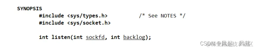 输入 man 2 listen 设置当前套接字状态为 监听状态