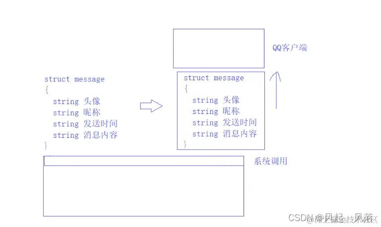 通过打包的方式,将结构体message发送给对方 对方收到后就会报告给上层QQ客户端