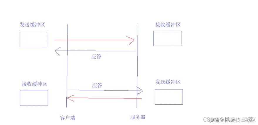 客户端和服务器在通信时,都有自己的发送和接收缓冲区 客户端发数据时,将客户端的发送缓冲区里的数据 发送到 服务器的接收缓冲区 中 服务器发数据时,将服务器的发送缓冲区里的数据 发送到 客户端的接收缓冲区 中