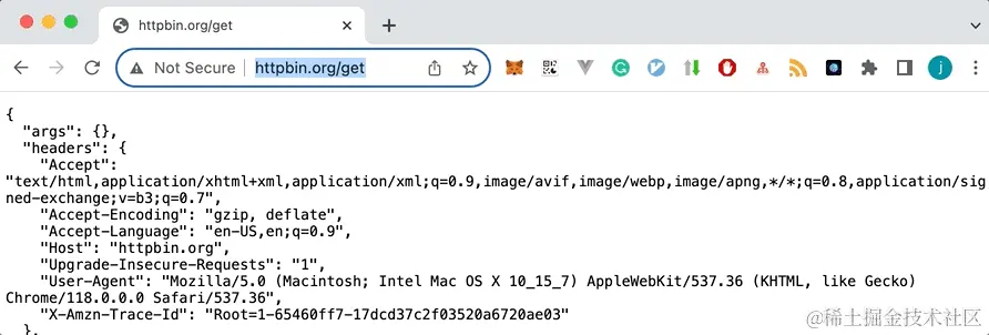 例如,GET 方法请求 httpbin.org/get,如下所示: