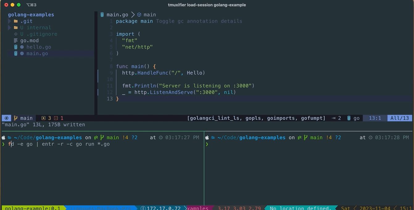 fd -e go | entr -rcd go run *.go;