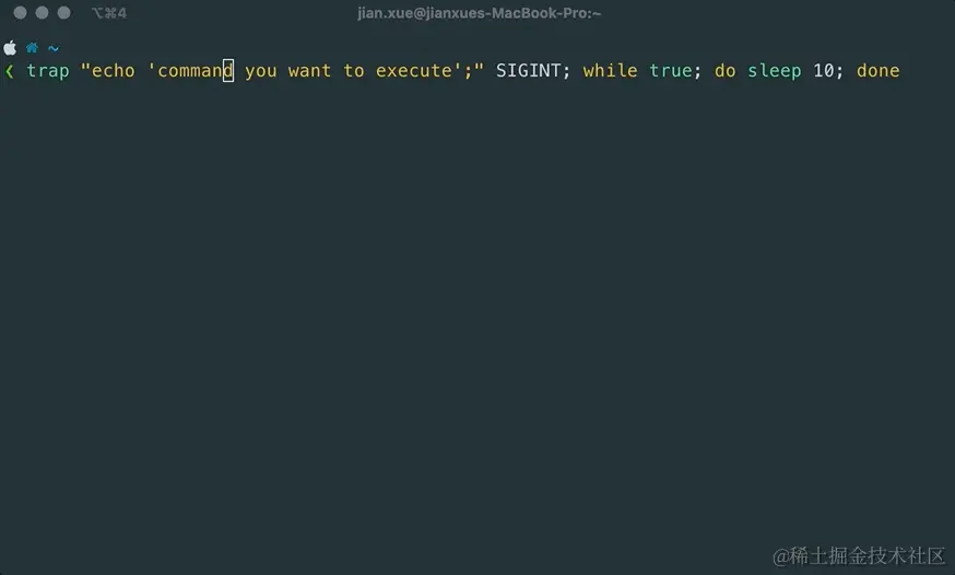 捕捉 SIGINT 信号,并打印 echo "command you want to execute"。