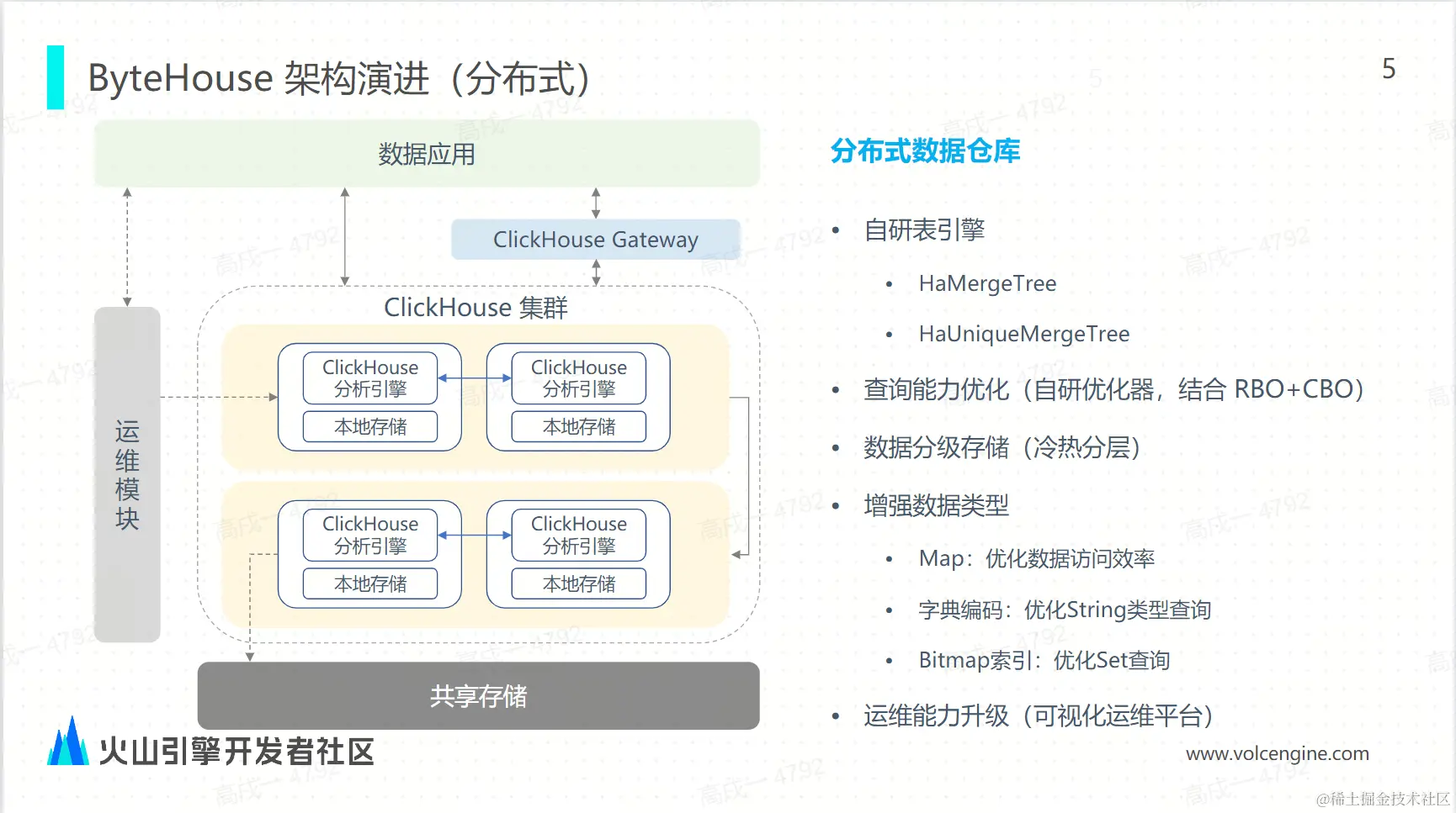 - 2020年, ByteHouse正式在字节跳动内部立项,2021年通过火山引擎对外服务。
