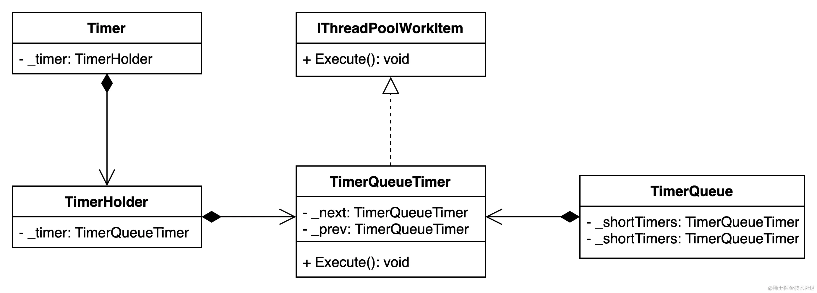 - TimerHolder:TimerQueueTimer 的封装,负责管理 TimerQueueTimer 实例的生命周期。