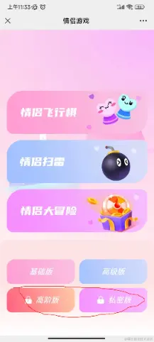 总之,飞行棋、扫雷和大冒险都是深受大众喜爱的传统游戏,简单易学,规则明了,适合所有年龄段的人。我们的情侣小程序,结合这些游戏的所有优点,还增加了许多新的功能和特性,使得游戏体验更加丰富和有趣。特别是我们从情侣模式切入,在娱乐的同时增进情侣间的感情。