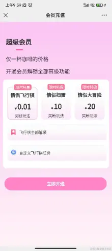 不同的游戏可设置不同的价格,用户开通了某游戏的会员后,可解锁该游戏的所有等级玩法