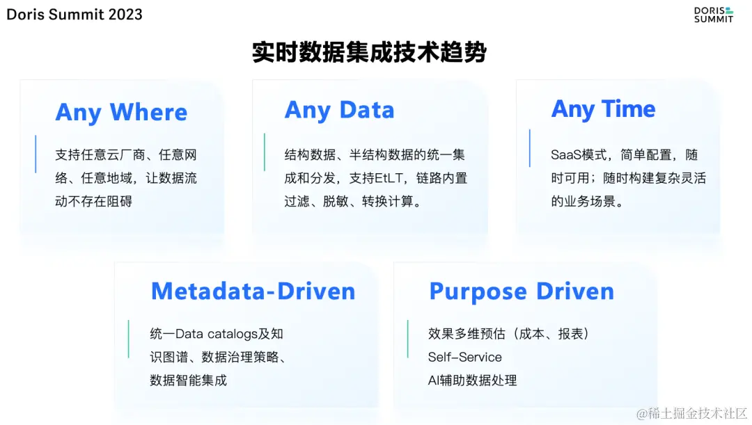 我们认为,在多云多源的背景下,随着云原生数仓的快速发展,只有云原生化的实时数据集成能够适应时代的要求,能够快速提供各个厂商、各种数据类型的快速汇聚,具备按需使用,即开即用的特性。