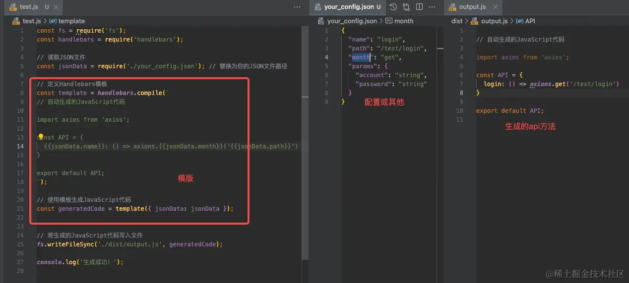 之前一直好奇类似openapi-generator-cli是如何使用Swagger文档的描述文件生成JavaScript请求代码的?一直以为是通过更底层“词法树”等方式转换的,发现自己想复杂了;其实就是通过一个“模版引擎”来生成,类似react、vue,不过更简介;