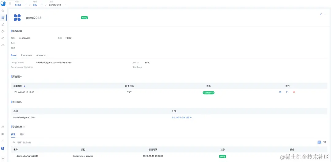完成部署后,您可以在 Walrus 中查看所部署的2048游戏。可以使用此 URL(http://domain:port/2048/)访问2048游戏。