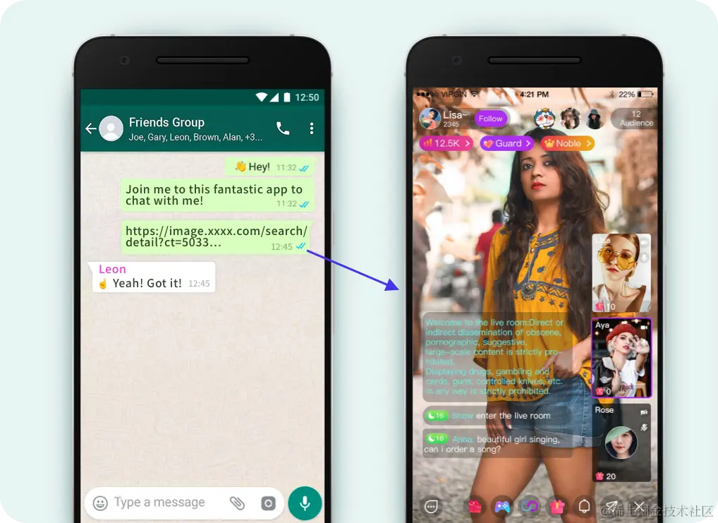 某出海中东的语音聊天APP,依托openinstall对多家主流浏览器和和社交平台的兼容性,完全覆盖海外复杂环境下的深度链接体验,用户分享App内主播房间、语音群聊房、转盘小游戏等页面给好友,只需点击链接即可一键拉起直达相关页面。