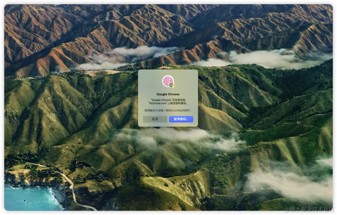 ② 创建密钥时,需要对用户本人进行生物特征识别,比如 “指纹” 或 “面部识别” 等识别方式;
